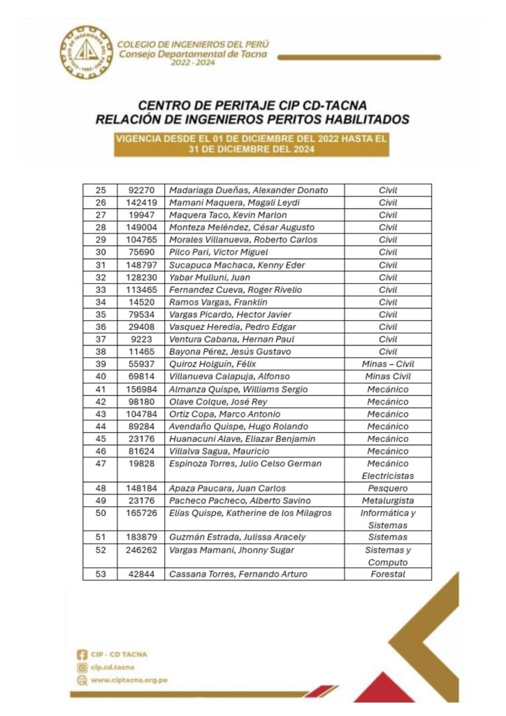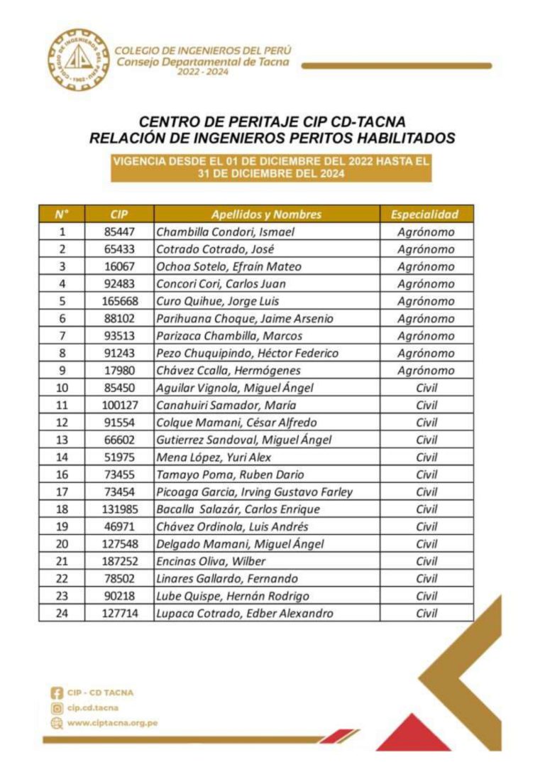 CIP TACNA – Consejo Departamental de Tacna – Colegio de Ingenieros del Perú